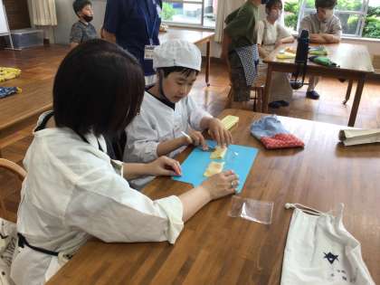 ハムやチーズを生地で包み、油で揚げる料理です。料理ができ上がる頃には、部屋いっぱいに香ばしい香りが広がりました。異国の文化に触れる、いい機会となりました。
