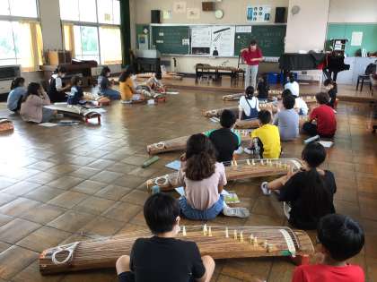 5年生の音楽で日本の楽器「琴」の音楽体験を行いました。「春の海」を琴の先生に演奏していただいたり、「さくら」を自分たちで演奏したりすることができました。琴の先生には、琴を弾く姿勢や、どのように演奏するかをグループごとに教えていただきました。日本の楽器である「琴」のひびきや旋律の美しさを味わいながら聴いたり、弾いたりすることができ、子どもたちにとって貴重な時間となりました。