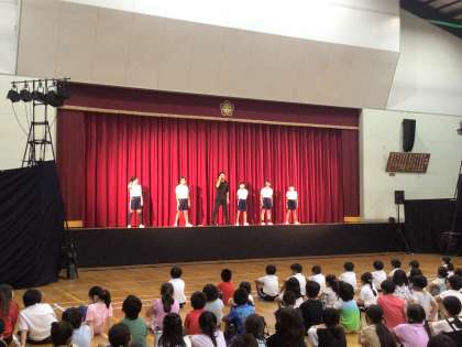 観劇の前には、演劇教室があり、5年生や6年生の代表児童が舞台に上がり、朗読劇に挑戦したり、劇に出演したりしました。当日の短時間でのリハーサルだけでしたが、堂々たる演技でした。