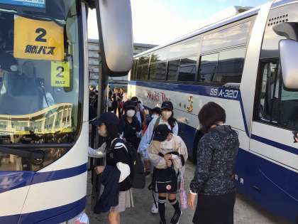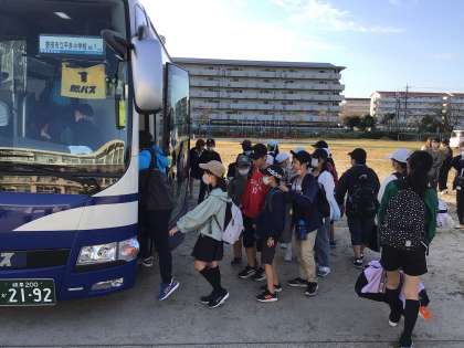 今日、明日と6年生が修学旅行に行きます。出発式では、スローガン「白紙から創る「新時代」〜新しいつながり、時間有効活用、歴代一の修学旅行へ〜」のもと、仲間と一緒に最高の思い出を作ろうと言う気持ちをもつことができました。出発式の後、みんな笑顔でバスに乗り込み、出発しました。朝早くからお見送りに来ていただいた保護者の方々、ありがとうございました。