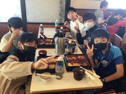 6年生修学旅行 昼食 公開日 2023/10/12 更新日 2023/10/12 各学年から 清水寺の見学を終え、昼食の時間です。予定よりも早い時間に昼食となりましたが、朝早かった子どもたちは、すでに空腹。みんなでおいしくいただきました。