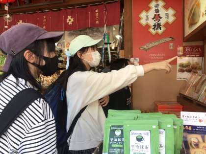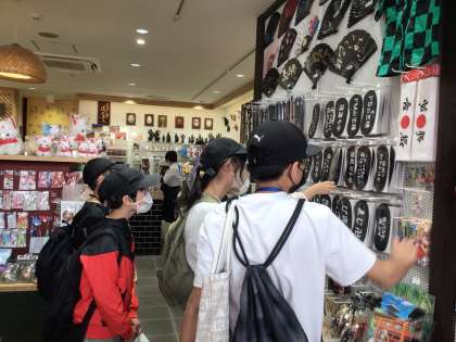 昼食の後は、子どもたちが楽しみにしていたお買い物の時間です。だんだんと観光客が増えてくる中、班の友達とはぐれないように、買い物を楽しみました。家族や親戚、友達のことを思いながらお土産を選ぶ子どもたちの顔は素敵でした。