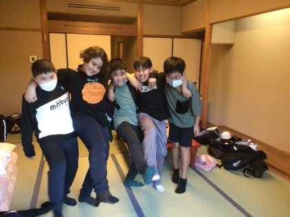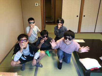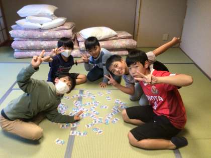 6年生修学旅行 入室1 公開日 2023/10/12 更新日 2023/10/12 各学年から いよいよ入室です。部屋へ入るなり「わあ、すごい!」「広い!」「目の前を川が流れている!」と感嘆の声が聞かれました。子どもたちのメリハリのある行動のおかげで、予定より45分ほど早く旅館に到着したため、部屋でゆっくり過ごすことができました。部屋では、持ってきたトランプをしたり、見学の記録を書いたり、思い思いの時間を過ごしました。