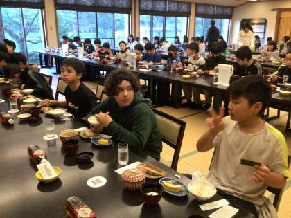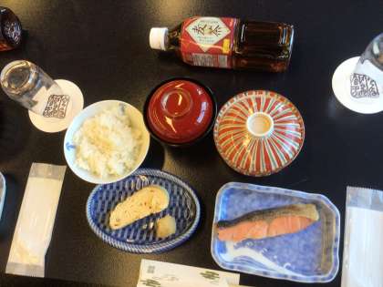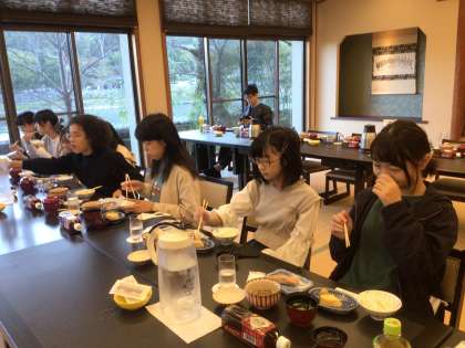 朝の散歩から戻ると、旅館の方が朝食を準備して待っていてくださいました。朝の散歩で体も目も覚めて、おいしく朝食をいただけました。朝食を食べて、エネルギーを蓄え、2日目も元気に過ごせるといいですね。