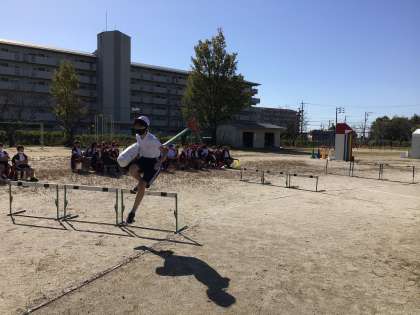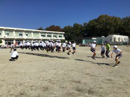 校内フェスティバル5 公開日 2023/11/08 更新日 2023/11/08 学校行事 校内フェスティバル6年生、障害物競走。 障害物リレーに続いて、八の字跳びをし、学級ごとに全員跳び連続10回ができたら、観客席の前で学級全員がポーズ。全員跳びが始まると、全校が「1、2、3・・・」と数え始めました。