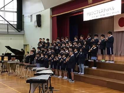 やまびこフェスティバル3 公開日 2023/11/12 更新日 2023/11/12 学校行事 岩本川の環境問題に着目して活動したことを発表しました。音楽では、心を合わせたメロディーを発表してくれました。