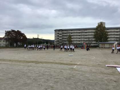 走順ごとに種目が変わる障害物リレーを自分たちで作ったジャンボバトンで繋ぎます。心を一つに全員で競技に取り組みました。