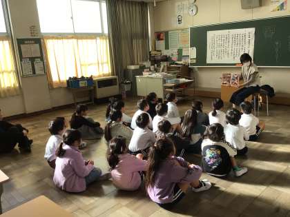 11月16日、読み語りボランティアの方々や、PTAの方々による読み語りがありました。紙芝居や、さまざまな分野の本を読んでいただきました。読み語りを通して、今まで読んでいなかった種類の本や、新しい分野の本に出会えて、子どもたちは、読書への意欲が高まっています。