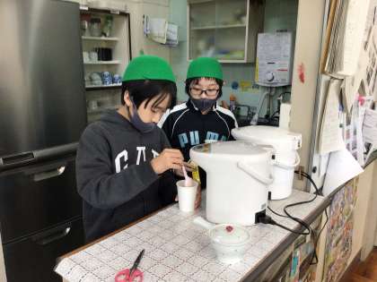 7・8組さんによるコーヒーデリバリーが職員室にオープンしました。今日の日のために、接客の練習をしたり、決められた量のお湯を注ぐ練習をしたりしてきました。