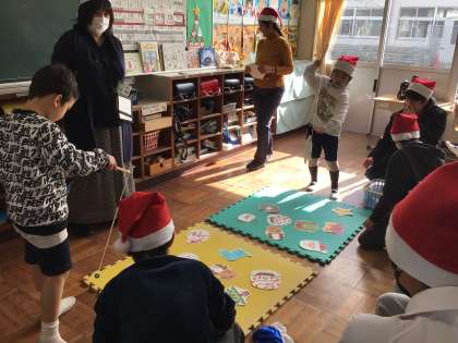 子どもたちは、ミュージックベルでクリスマスの歌を演奏し、サンタさんにプレゼントしました。サンタさんとともにクリスマス釣りを楽しみ、サンタさんからプレゼントをもらいました。サンタさんと楽しい時間を過ごすことができましたね。