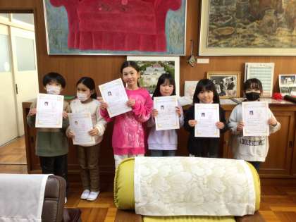 「みんなで幸せになりま賞」の表彰がありました。学校や友達のための行動、正しい行動など素敵な行いをした子どもたちが表彰されました。
