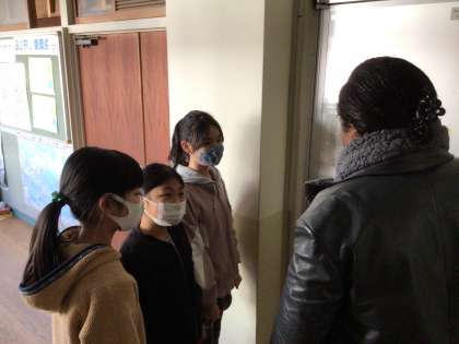 交流会では、はじめに留学生の方の出身地であるフィリピン、フィジー、インドのお話を聞き、次に5年生が準備していた遊びや学校案内などをしました。