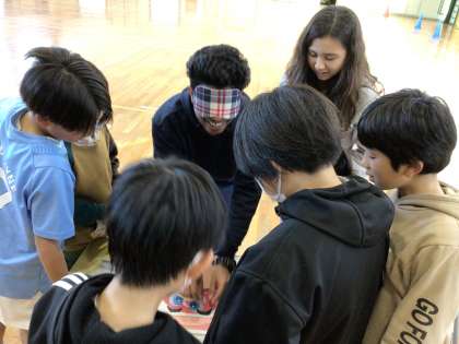 5年生は総合的な学習として、国際理解をテーマに取り組んでおり、この日のために留学生の方に紹介したい日本の文化を考えたり、留学生の方と一緒に楽しむ準備をしたりしてきました。