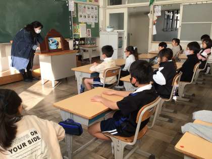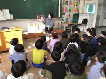 読み語り1 公開日 2024/02/08 更新日 2024/02/08 PTA活動 今日は、今年度最後の読み語りでした。読み語りにご協力いただいた、たくさんの方々のおかげで子どもたちは一年間、さまざまなお話にふれることができました。読み語りに夢中になる子どもたちの目や笑顔を見るたびに、本やお話の世界の素晴らしさを感じました。 読み語りにご協力いただいたみなさま、ありがとうございました。