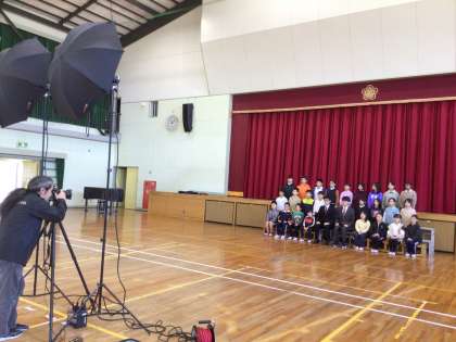 2〜6年生の学級写真撮影を行いました。カメラに向かって、背筋を伸ばして、はいポーズ!
