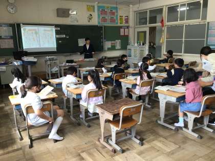 2年生の教室では、さし絵を見ながらどんな遊び方をしている子が1番多いのか、調べるための勉強していました。これから表やグラフに表していきます。