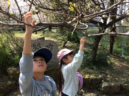 春見つけをしていると、「プープー」という音が。音のする方を見ると、桜の花びらを口にあてて、音を鳴らしている女の子。素敵な春の音色でした。