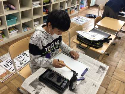 7、8組書写 公開日 2024/04/18 更新日 2024/04/18 各学年から 今年度初めての書写でした。書写ボランティアの先生にもサポートしてもらいながら、筆使いについておさらいしました。集中して丁寧に書きあげることができました。