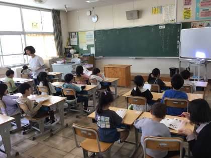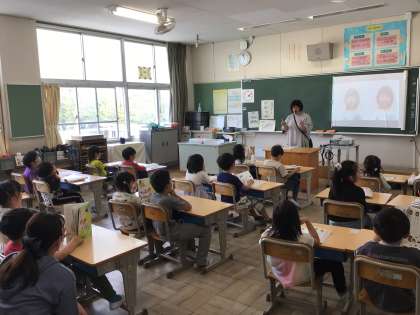 1年生国語「あいうえおのうた」 公開日 2024/04/19 更新日 2024/04/19 各学年から 1年生国語では、ひらがなを一文字ずつ学習し、練習しています。「あいうえお」の発音で口の大きさや形を考えてしっかり発音できるように頑張っています。