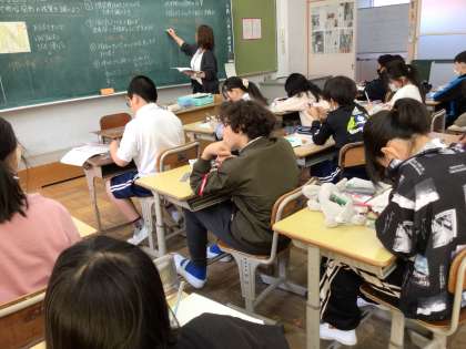 4/19 6年算数 点対称で中心点をみつけよう 公開日 2024/04/19 更新日 2024/04/19 各学年から 6年生は、線対称に続き、点対称の学習をしていました。 対応する点と点を結ぶと中心点が現れます。 定規を手際よく使って、こつを見つけた6年生でした。