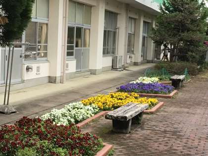 花いっぱいの校庭 公開日 2024/04/23 更新日 2024/04/23 お知らせ 教室へ向かう渡りから中庭を見るとパンジー、ツツジがきれいに咲いています。6年生の教室の前あたりには藤棚もあります。今週の金曜日、授業参観の折に是非ご覧ください。