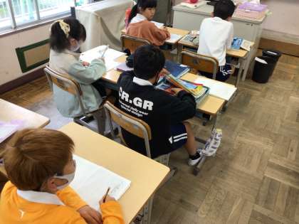 今日もおはようございますと気持ちのよいあいさつが聞こえます。連絡帳に翌日の連絡を書いて担任に提出をします。早く提出できた人は読書を始めていました。