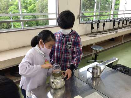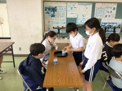 今日は、お茶の淹れ方を学びました。お湯や茶葉の量を計ったり、ガスコンロでお湯を沸かしたり、同じ濃さになるように湯呑み茶碗に注いだり、慣れない手つきながらも楽しく実習することができました。家族のために家でもぜひ実践してみてくださいね。