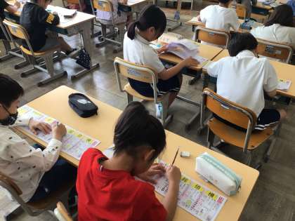 4/26 3年国語 公開日 2024/04/26 更新日 2024/04/26 各学年から 「新しいかん字をおぼえよう」というめあてで、漢字の練習をしていました。先生の声に合わせて書き順を確認していました。