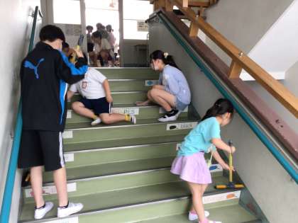4/26清掃活動 公開日 2024/04/26 更新日 2024/04/26 特別活動 1年生と6年生は一緒に掃除をしています。ほうきのやり方や、雑巾のかけ方など優しく教えながら、学校をきれいにしてくれています。6年生の高学年としての姿が素晴らしいですね。