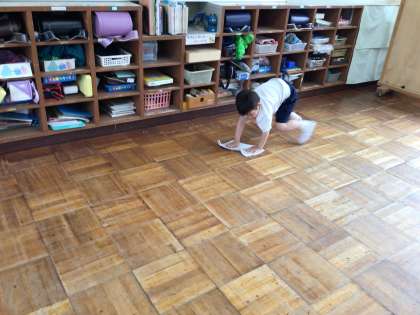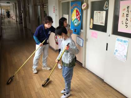 給食の後は清掃です。7・8組に6年生が来て一緒に清掃をしています。テキパキと動く姿はさすが最上級生ですね。