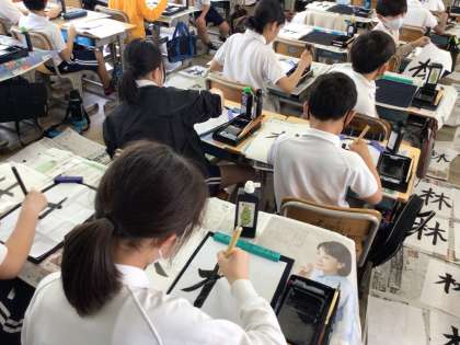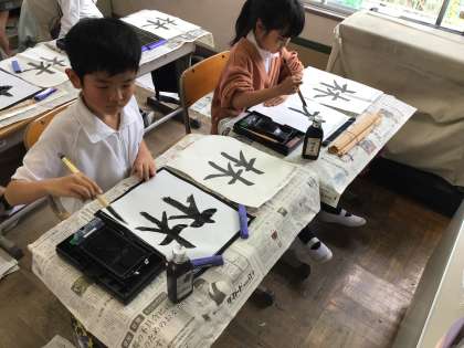 今日は前回練習した「林」の清書です。うまく書くコツを聞いたあと、がんばって書きあげました。