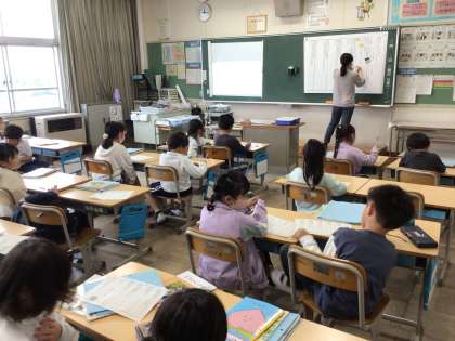 2年生は、「はたらく人の仕事」について予想し、発表しました。実際にインタビューしていきます。