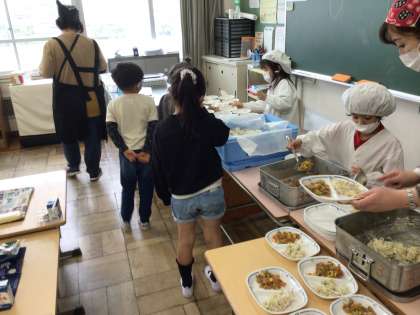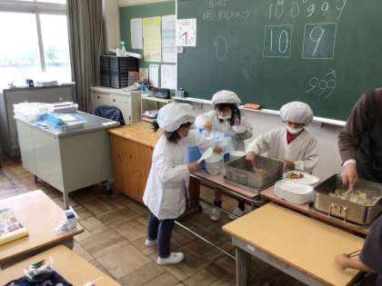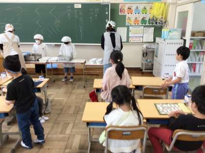 1年生は、入学して1か月が過ぎようとしています。給食の準備も上手にできるようになってきました。