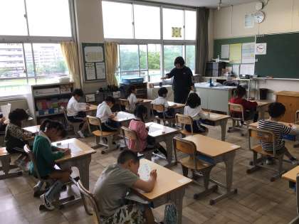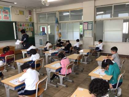 1年生の国語で初めてテストを行いました。みんな真剣な表情で、頑張って書いています。