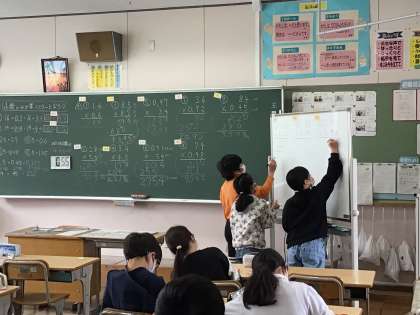 5/2 5年生算数 公開日 2024/05/02 更新日 2024/05/02 各学年から 5年生算数「小数の計算」の学習では、小数のかけ算マスターになるために、たくさんの計算問題を頑張って解く姿が見られました。