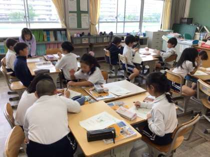3年生の社会科「わたしたちのまち」で、自分のおすすめの場所をプリントに書き、グループで発表しました。自分の家の近くや、旅行で行ったところ等、お気に入りの場所がたくさんありました。