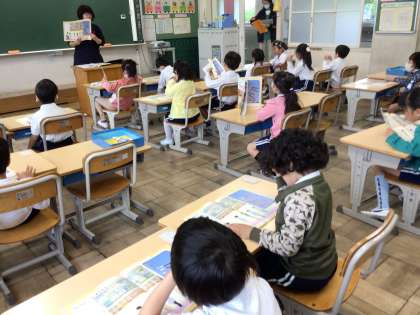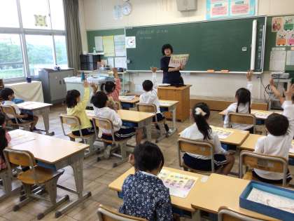 1年生の子供たちは算数の授業で何番目かなという学習をしました。