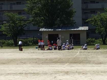 1年生の体育では、来週から始まる体力テストの練習をしています。今日は、「ボール投げ」の練習を頑張りました。