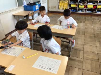 習ったひらがなを使って言葉をつくる学習もしています。どんどん書けるひらがなが増えていきますね。