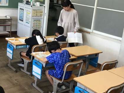 2年算数では、昨日に引き続きたし算の筆算を学習しています。位取りが慣れるまで難しいので練習が必要ですね。がんばって問題を解いていました。