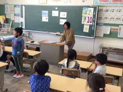 5/10 2年外国語活動 公開日 2024/05/10 更新日 2024/05/10 各学年から 今日の5限、2年1組は外国語活動の時間で、ALTのエナ先生と楽しく活動を行っていました。真剣にエナ先生の発音を聞いたり、まねて発音をしてみたりと、盛り上がっていました。