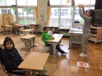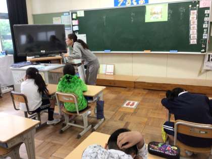 8組の国語では、絵を見て様子を表す言葉を考えたり、友達の意見を聞いたりしながら学習しました。