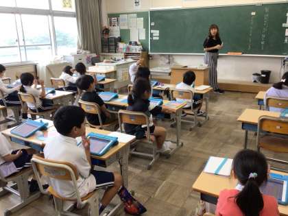 2年生の国語では、「はたらく人にインタビューをしよう」という学習をしています。学校の先生方にインタビューする計画を立てて、インタビューしていきます。学習用タブレットにまとめていました。