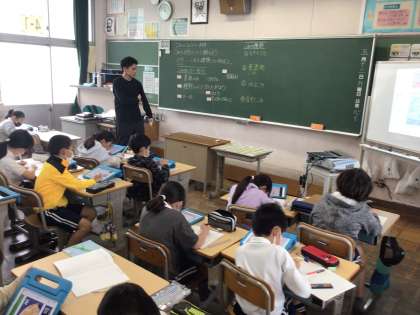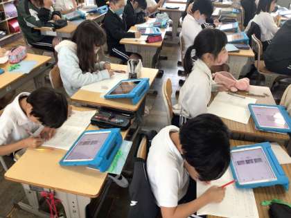 4年社会では、「ごみの分別について調べよう」というめあてで学習していました。タブレットで資料を見ながら真剣に先生の説明を聞いていました。