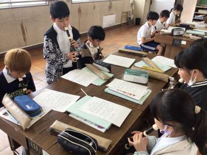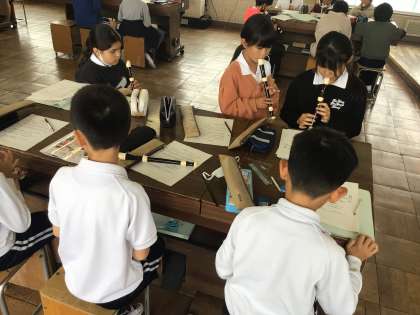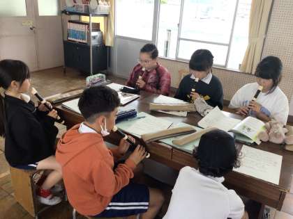 4年音楽では、リコーダーの練習をしたり、「さくら さくら」をCDに