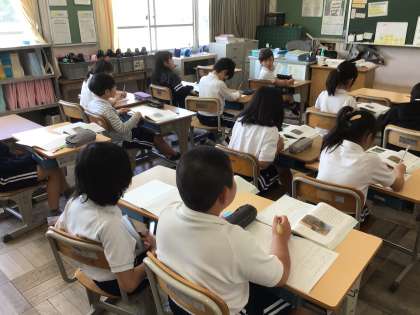 3年生の国語で「自然のかくし絵」の学習をしています。音読したり、段落に分けたりして、段落ごとに読み取っていきます。国際教室でも「自然のかくし絵」について、説明文の内容をしっかり学習することができています。