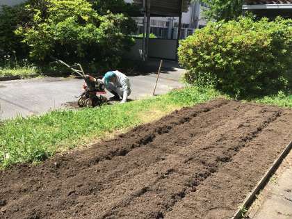 校内整備員の末永さんが4年生が使う畑を準備してくれています。また、先日までパンジーが咲いていた花壇も次の苗を植えるために公務手さんたちがきれいにしてくれています。本当にありがとうございます。