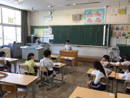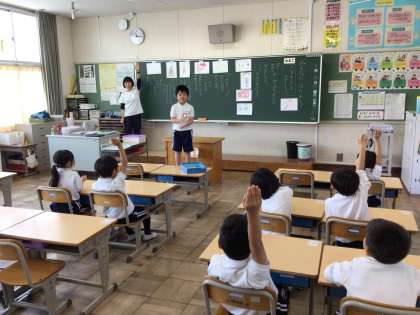 5/14 1年生 国語 公開日 2024/05/14 更新日 2024/05/14 各学年から 1年生の国語「みんなに話そう」の中で、今日は「クイズ大会を楽しもう」というめあてで学習しました。「ぼく、私が見つけたものはなんでしょう」というクイズで、一人一人ヒントを出しながら、発表しました。国際学級では、「〇〇が〜する」の文章をつくりました。