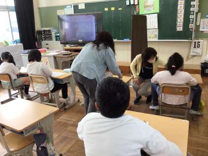 7組では「す」のつく言葉集めをしました。たくさん見つけることができました。8組では、国語のノートにきれいに書くように頑張っていました。