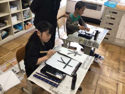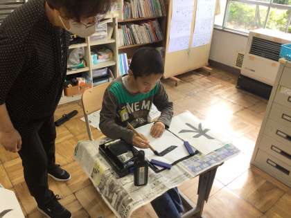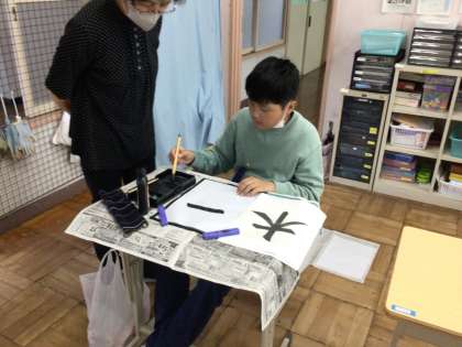 7・8組書写では、「木」が本日の課題です。はらいの筆使いをがんばって練習しました。